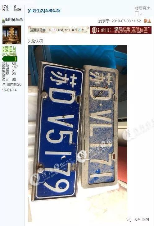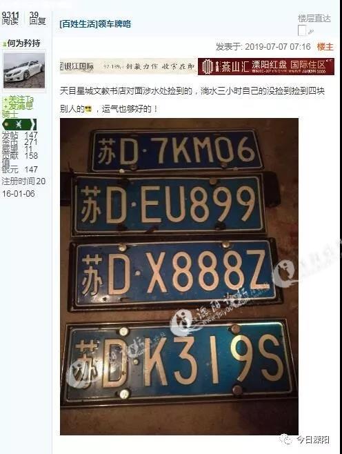 而在这一场暴雨的冲刷之下,我市有不少车辆的牌照在雨水中被冲走了,一时间朋友圈和论坛上便不乏有热心市民在捡到汽车牌照后,发布了带有照片和联系方式的失物招领消息。