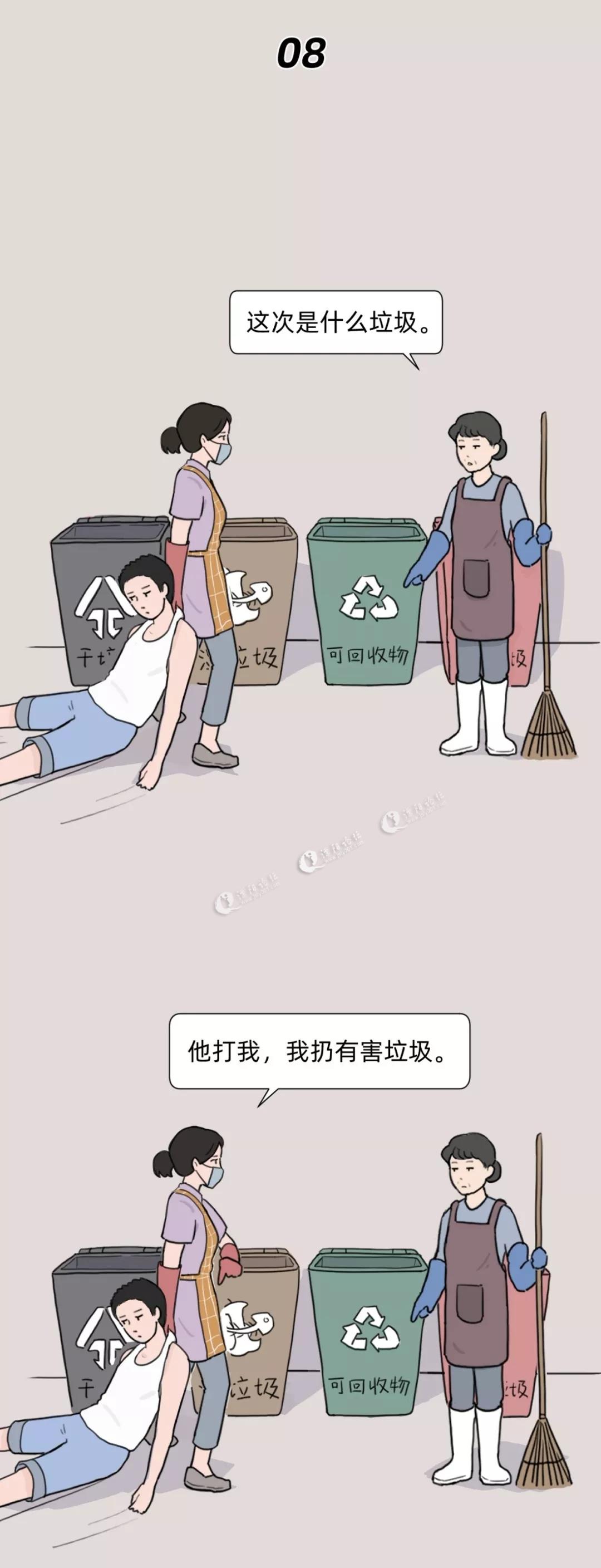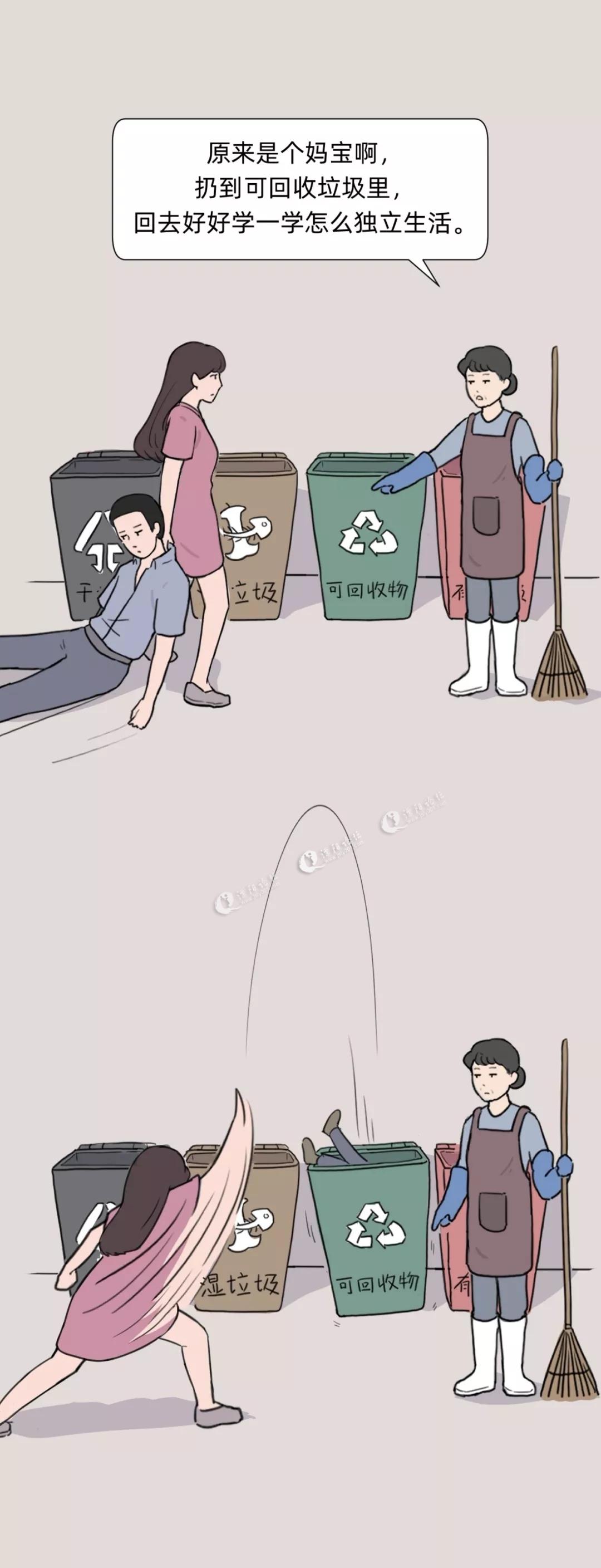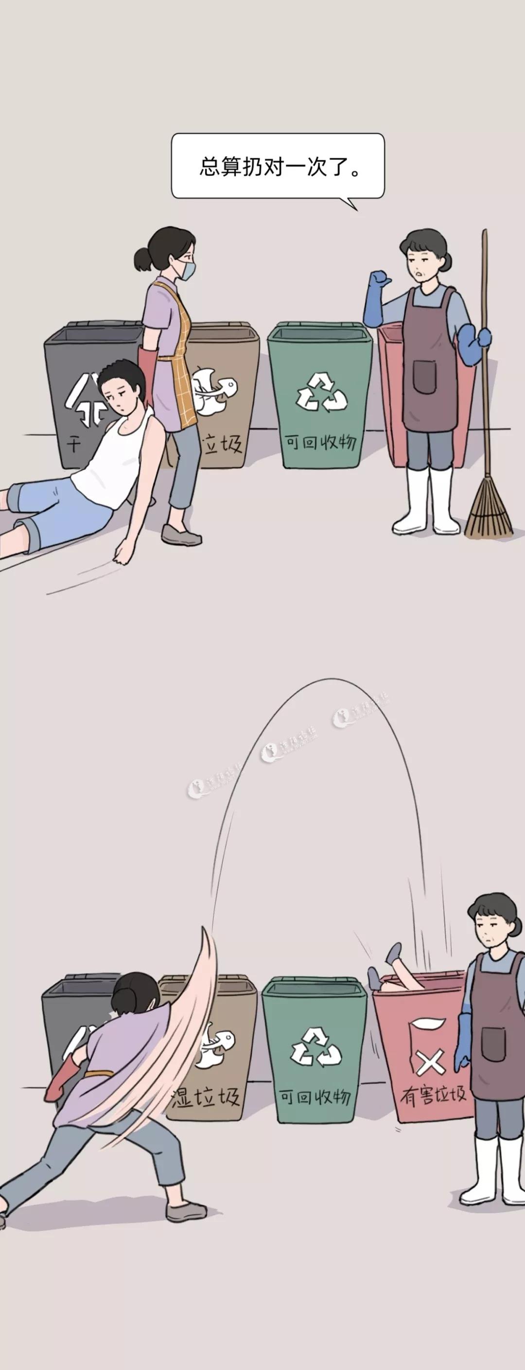 女主扔垃圾的动作实在帅气,大妈刷垃圾桶的动作也很霸气,深入人心,甚是解气!