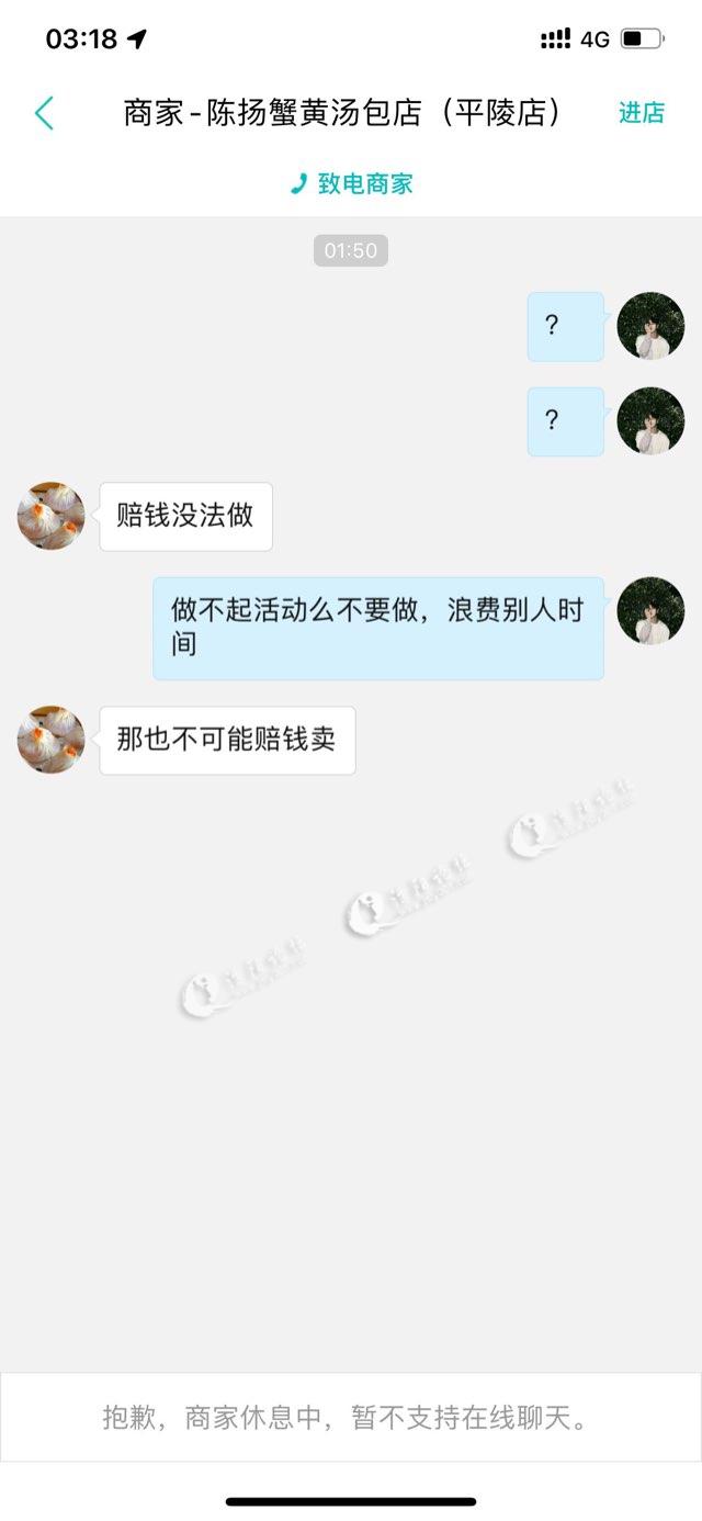 我就想请问卖家,既然赔钱的为什么要做这个活动?吸引力客流量,又不兑现活动,轻飘飘的赔钱的做不了就把客户打发了。我每年点外卖三四千块钱,从来没遇到过这种情况。