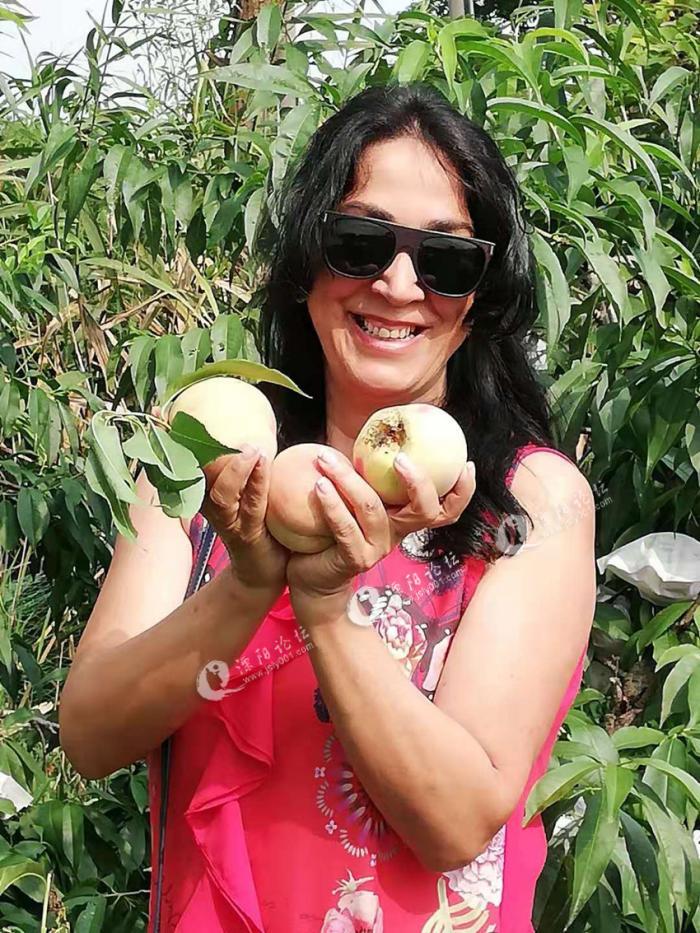 多年前我的电话号码就公开挂在了溧阳论坛,因此很多网友都知道我的电话,这不,最近就有几位网友或电话或微信我,让我有空采访一下离溧阳古城不远的一家无名果园。也许巧了,当我背着“骨灰级”的单反来到这家默默无闻的蔬果园时,遇上了三位美国人也慕名而来在此摘桃、摘梨、品瓜果。也许习惯动作,我向陪同他们今年九岁的讲了一口标准英语的溧阳籍小姑娘问询起来。原来,这三位美国人是父母女儿一家子。女儿belen四年前就来到了溧阳从事家教,四年来一直是这位溧阳小姑娘的英语老师兼保姆。belen老师用生硬的溧阳话对我说:我对溧阳有感情了,都不想回去了,现在暑假期间把我父母接过来玩玩,听说这个瓜果园不错,就过来了。