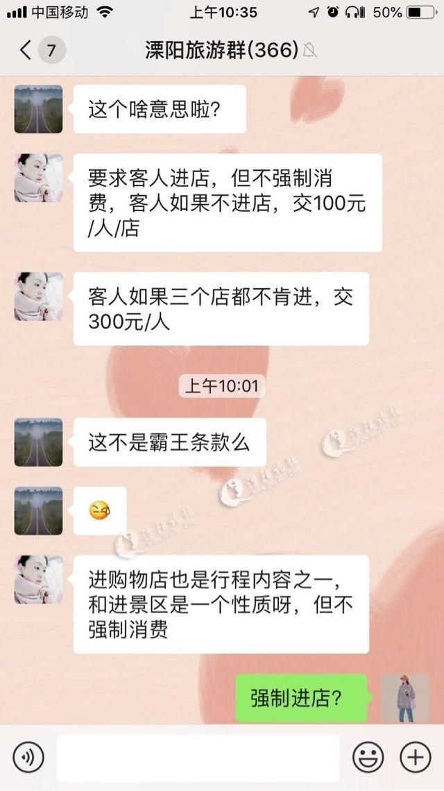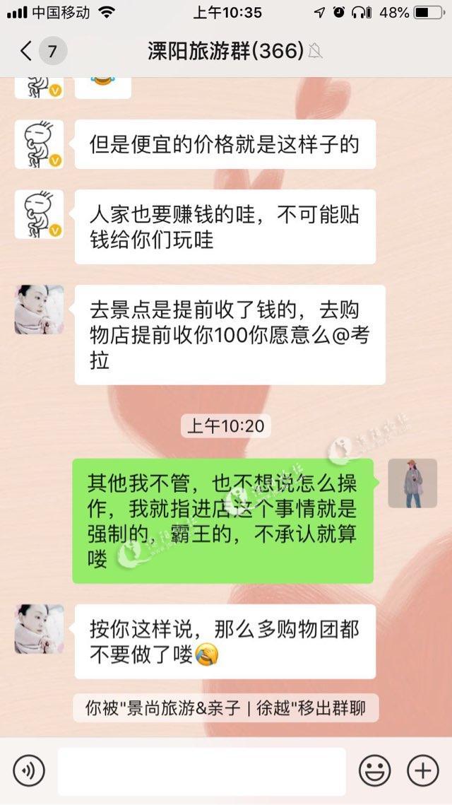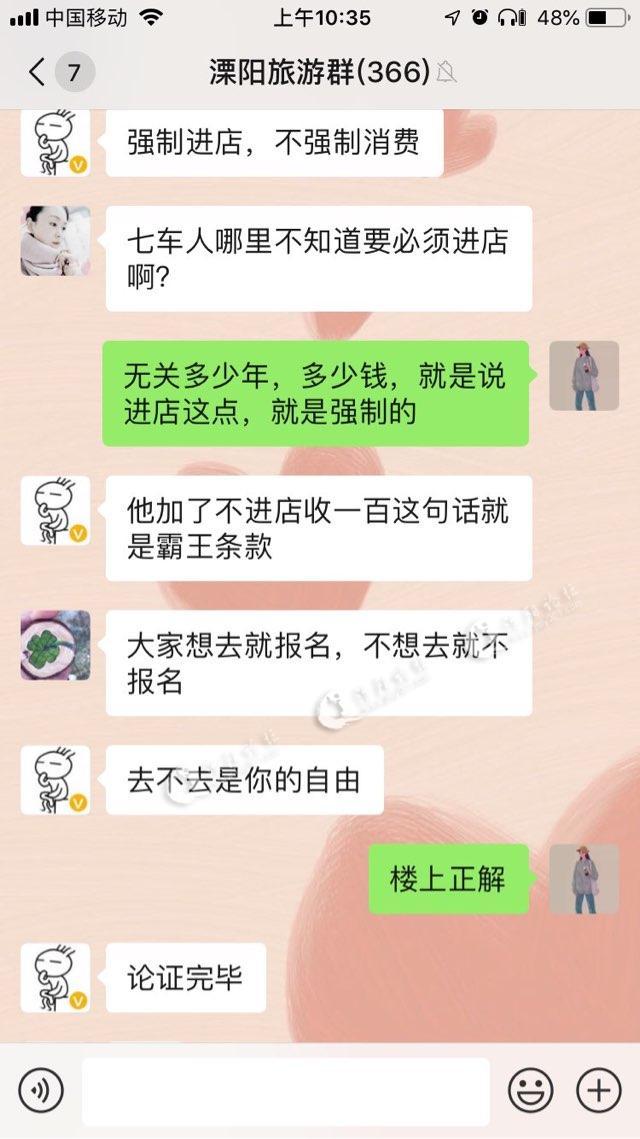 好的,就问了句。是强制进店?景尚旅游就开始啦和我争辩啦!争论不过,把我移除群聊?你是群主你厉害啦~