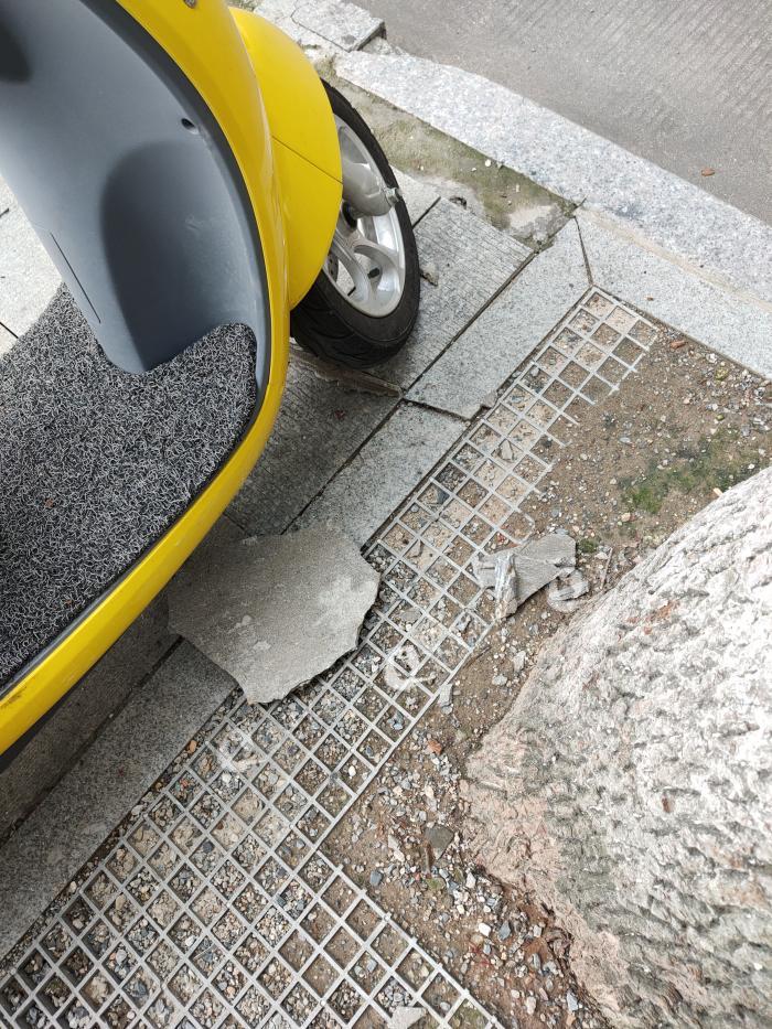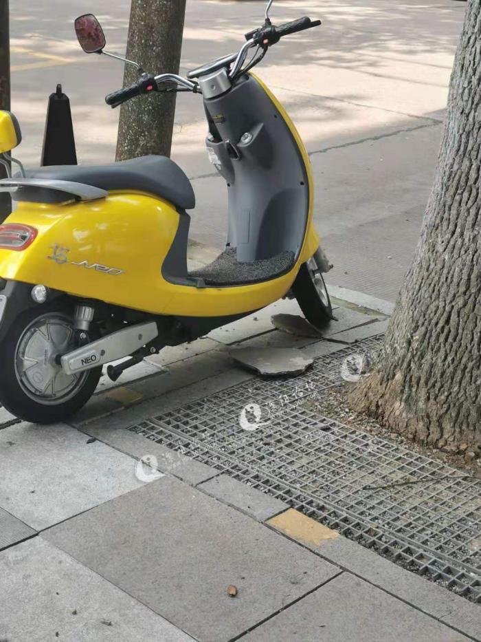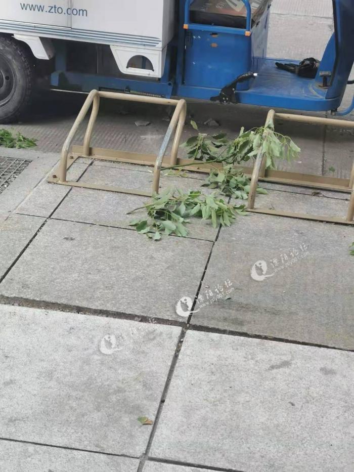 今天走到溧阳新华街老溧阳门口这边,看见很多人围着一辆黄色电动车,还以为车子坏了,走近一看吓一跳!周围都是石头,树枝,围观群众说是老溧阳楼顶掉下来的,先砸到了雨棚,再掉在了地上!