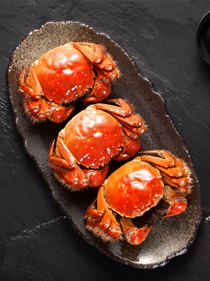 青壳白肚,金爪黄毛,肉质鲜嫩,膏脂浓郁。