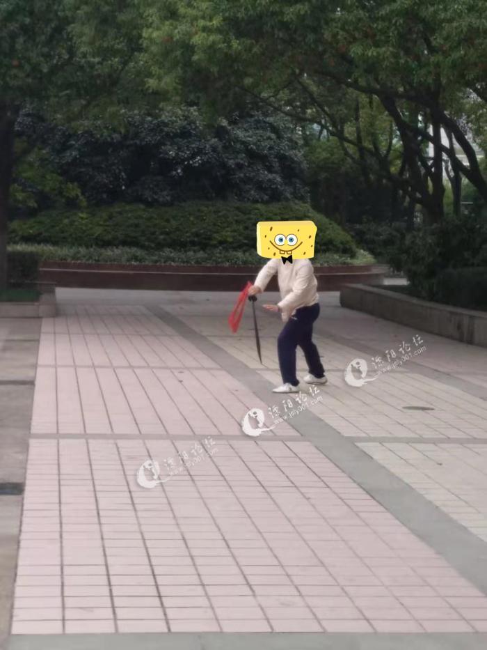 有一次早上经过溧阳市政府广场的时候,远远就听到了叮铃哐啷的声音,定睛一看原来是有一位正在早锻炼,但是这位锻炼的方式和其他的不太一样,不是慢动作的广播体操而是在舞刀,一招一式都充满了力量,虎虎生威,刀看上去也挺重的样子,厉害了大爷。