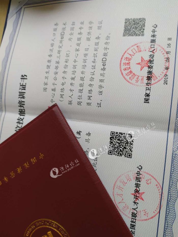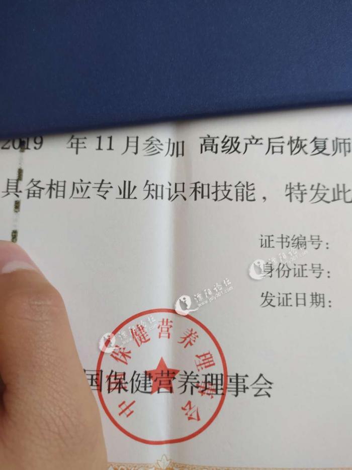 试营业前夕,有老师过来指导(加盟店),老师还给我们说如果报名了产康证的,到时还要去考试,往往工作一段时间考过的几率会大一点。之后有一次还跟老板聊,考证的事,就说了老师说的话,老板大概意思是说不用我们去考,有人代考,你们去考了也不一定考的过,证直接寄过来的。然后一直也没在意,证都是我离职之后才收到的,拿到证就发现不太对。