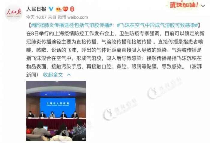 2月8日举行的上海市疫情防控工作领导小组新闻发布会,提到:目前可以确定的新型冠状病毒感染的肺炎传播途径主要为直接传播、气溶胶传播和接触传播。