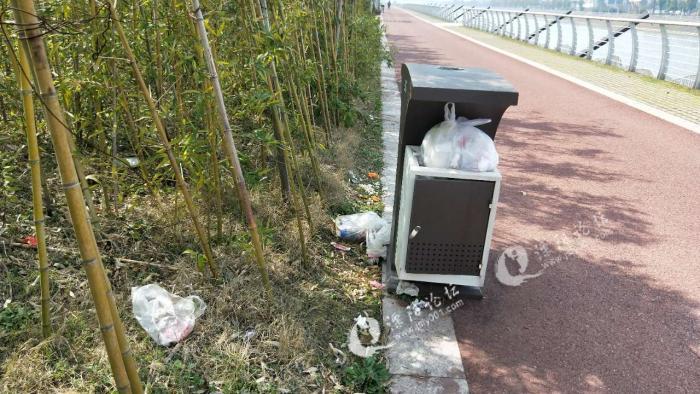 请昆仑街道领导安排环卫工人清理一下,泓口大桥西侧垃圾桶里的垃圾堆的满满的