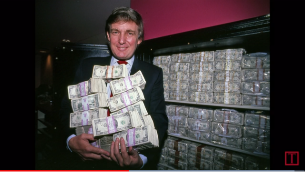 年轻时的特朗普与他的财产合影 图片来源:《Times》纪录片视频截图