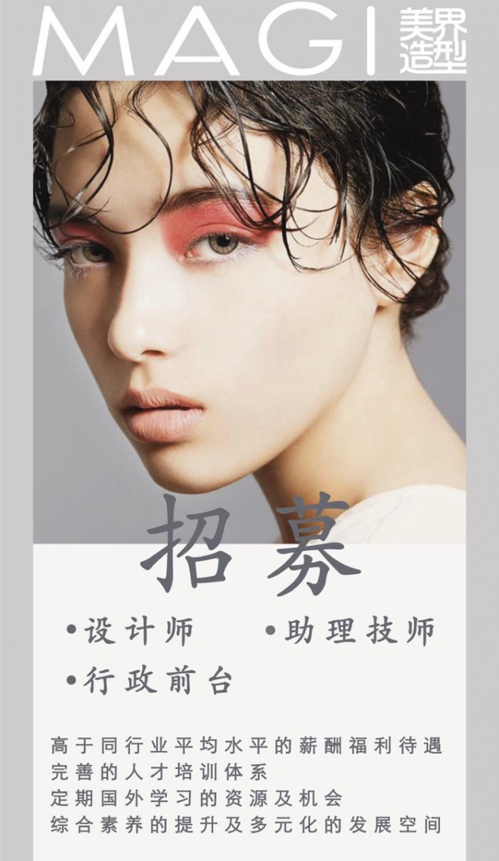 上河城二楼MAGI 美界造型诚招助理、技师、护理师、发型设计师。月薪3000-10000+