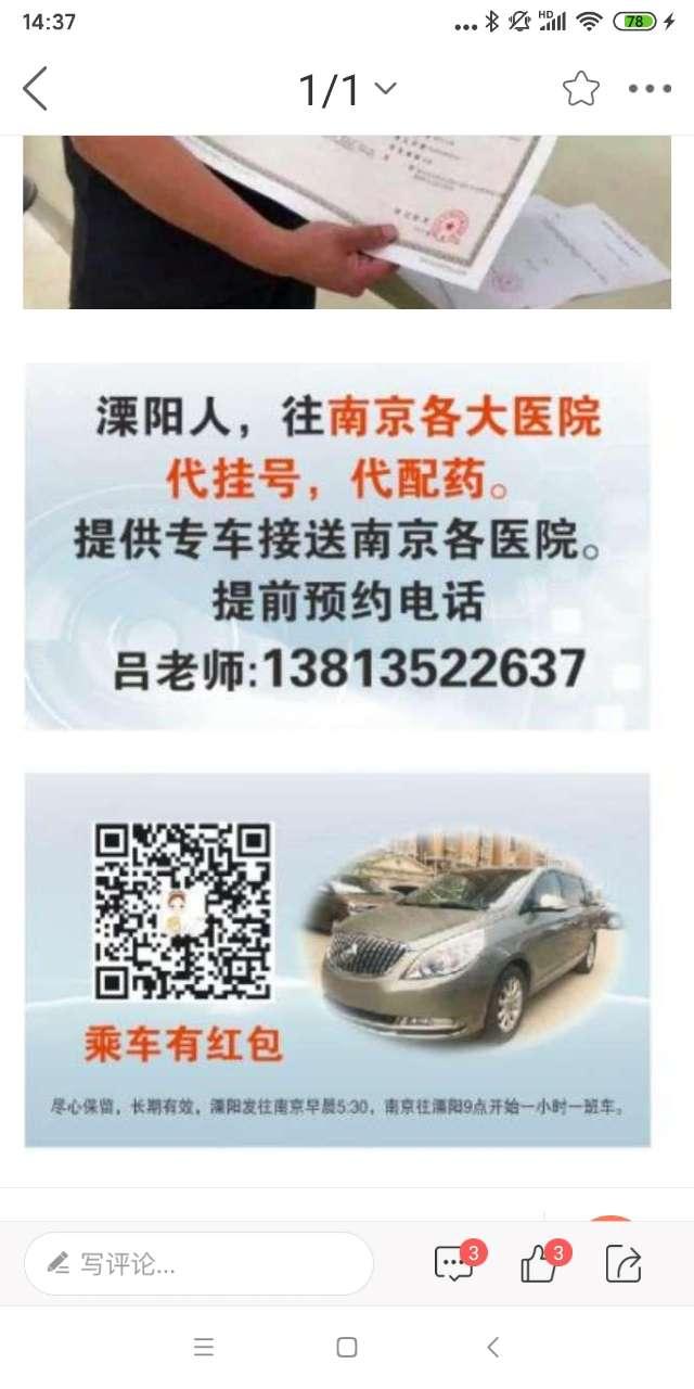 有没有人知道溧阳那些早上可以接送人去南京各个医院的车子呀,求告知
