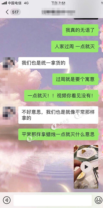 本来好端端的就是问下蜡烛为什么点不着,他叫我自己去问厂家,点不着问他干嘛,说你这种大爷以后别来买了,是你,你沉的住气吗?