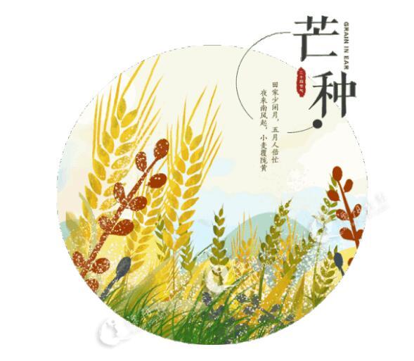 『芒种』是夏季的第三个节气,表示仲夏时节的正式开始,古人认为,此时可种有芒之谷,过此即失效,故名为『芒种』,是播种最忙的季节,故又称『忙种』。芒种时节雨水增多,气温升高,长江中下游进入梅雨时节,这时应慎防湿气扰人。可多晒太阳,保持室内通风,以便去除湿气,饮食以清淡为主,不宜食过于肥腻的食物,可多吃健脾、行气、祛湿之品,如绿豆、薏米、眉豆、山药等。
