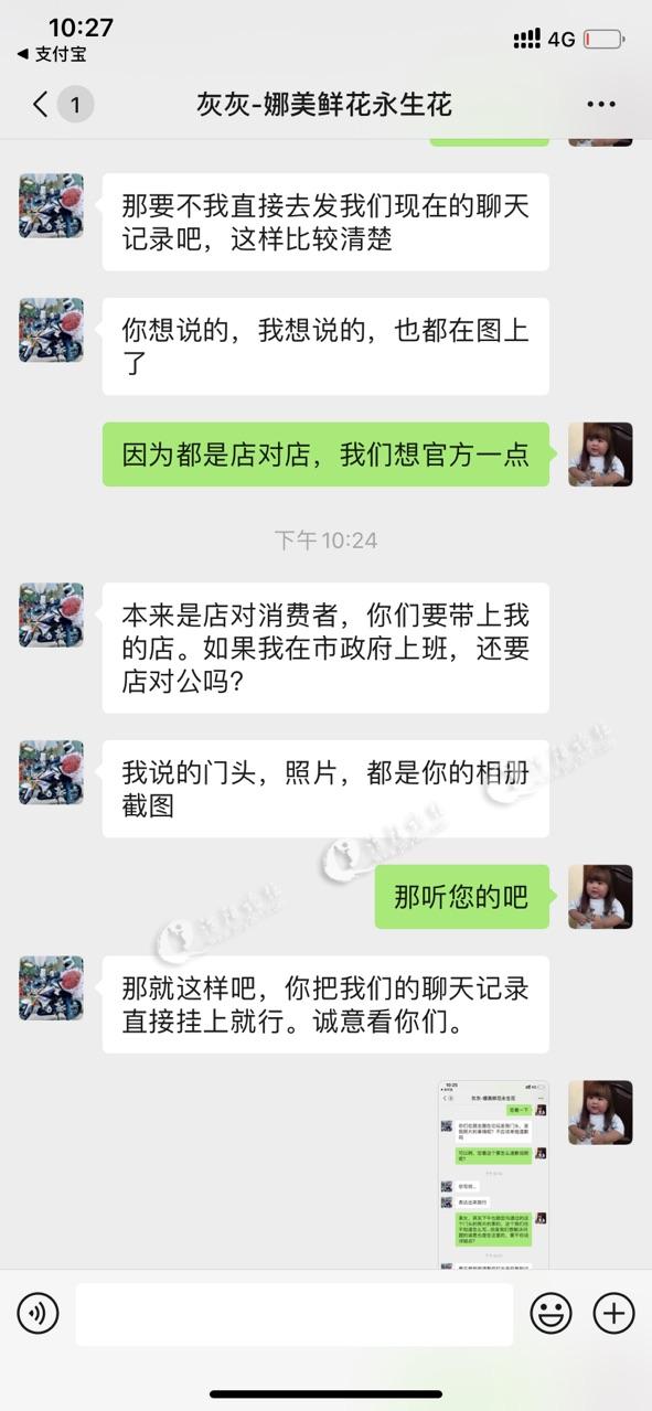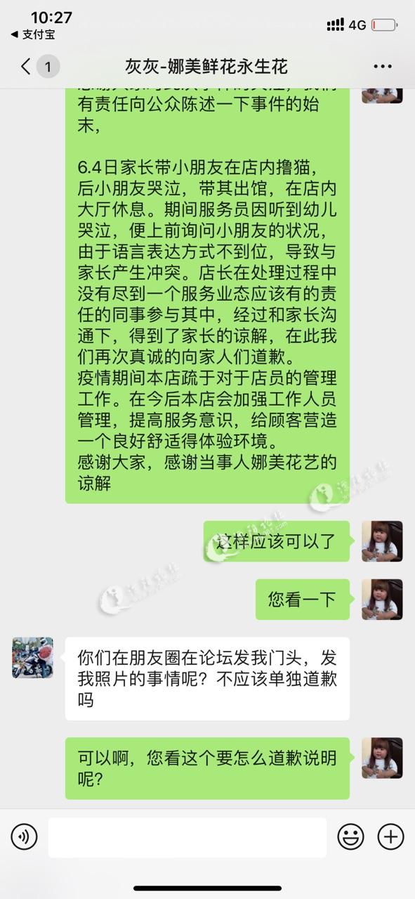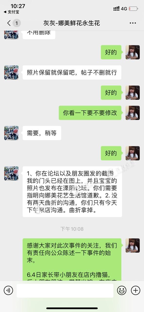 我是娜美花艺生活馆负责人,通过双方协调,现已收到玺子猫店道歉。双方经过协调已解决误会。6.4号晚收到的电话和截图存在威胁的语言是一个误会。今日下午店长亲自到本店协商,她们也意识到自己的不足,表明会在以后的工作中弥补不足。感谢广大网友的关心。本人对此事不再追究。