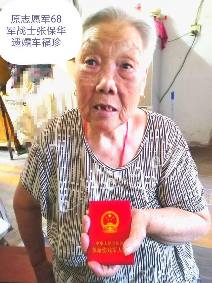 在古县茶亭村委,我们寻觅到了当年志愿军第68军战士张保华的遗孀,车福珍老大娘。她今年已经82岁,与张保华老兵一起生有三儿三女,她现在一个人住在大儿子的家里,三个女人,一个嫁在常州,有两个嫁在溧阳市里,每逢节假日,他们就会回来茶亭,看望自己的老妈。