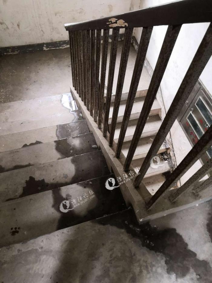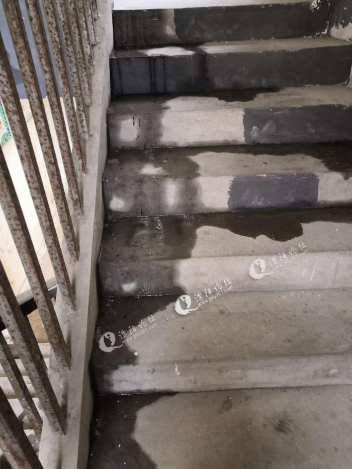 南渡镇金渊小区,4栋楼梯平台漏成这样,有人管吧?