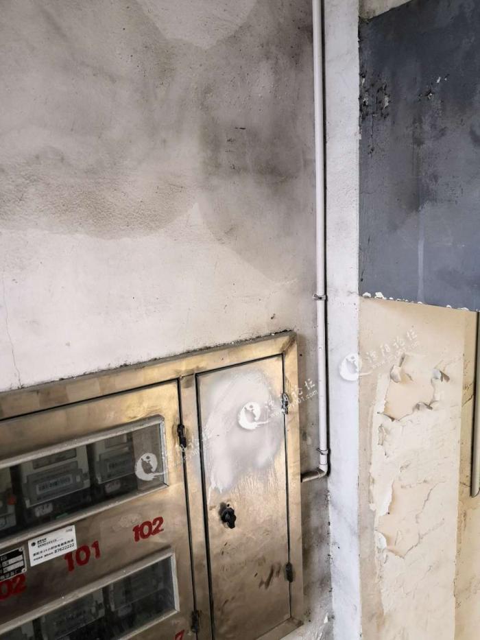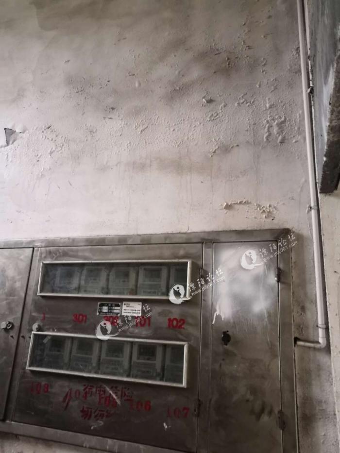 南渡镇金渊小区,4栋楼梯平台漏成这样,有人管吧?今年前就和嘉信物业反应过了,无人问信!!!配电箱所在的墙面都是水,不知道会漏电不?