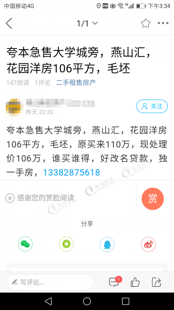 像燕山汇这一万一平的花园洋房才是正常价格,处在所有楼层中价格偏低的位置。