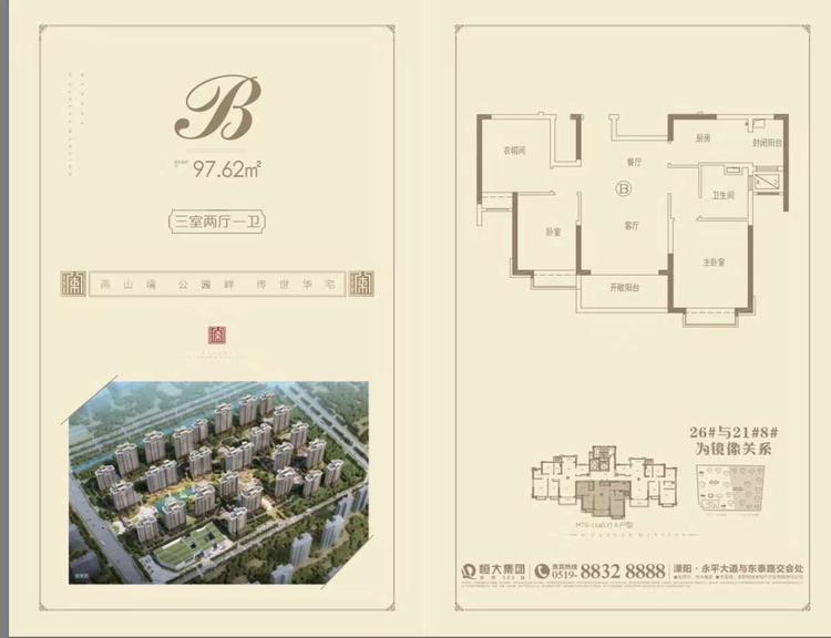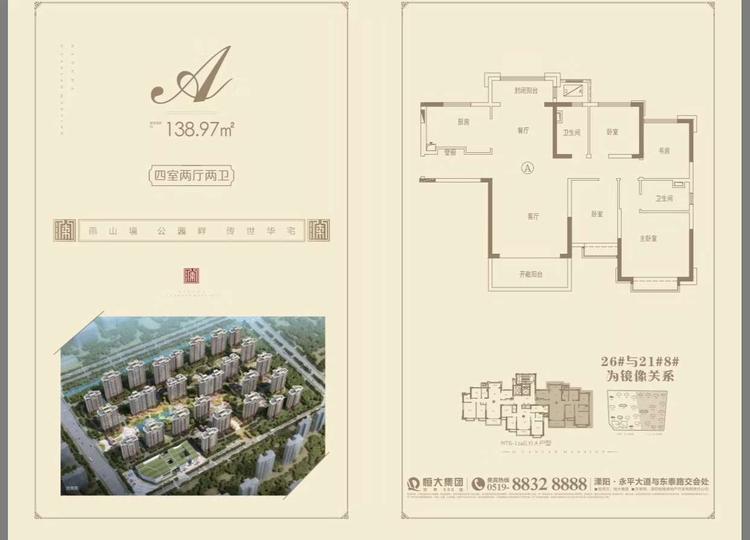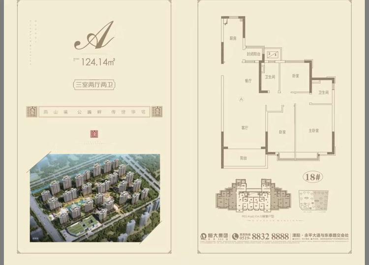 恒大观澜府19楼西边户,124平米,总高22层,一口价168万改名