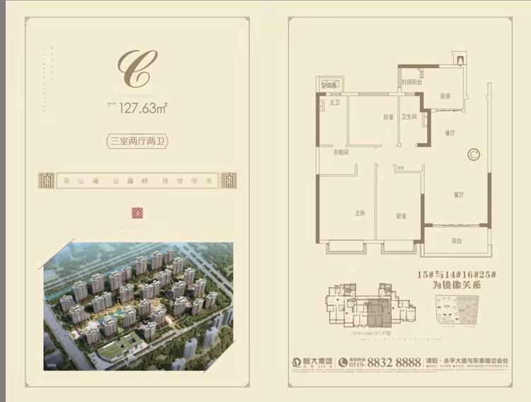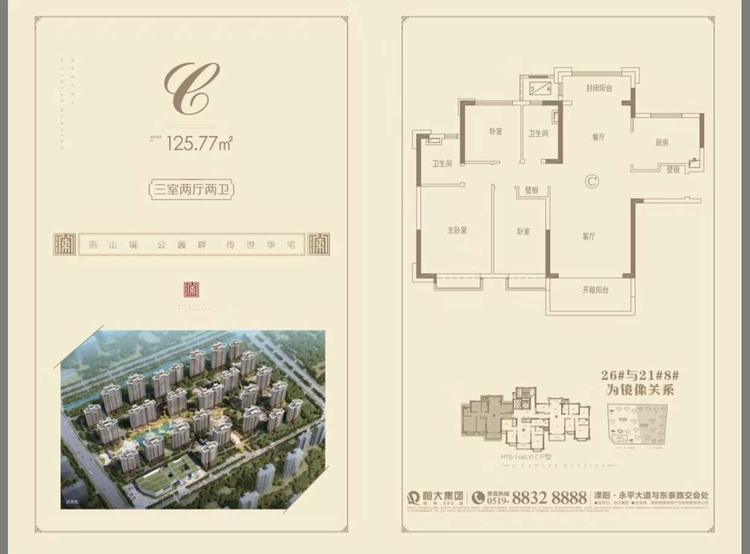 恒大观澜府7楼东边户,124平米,总高22层,一口价158万改名