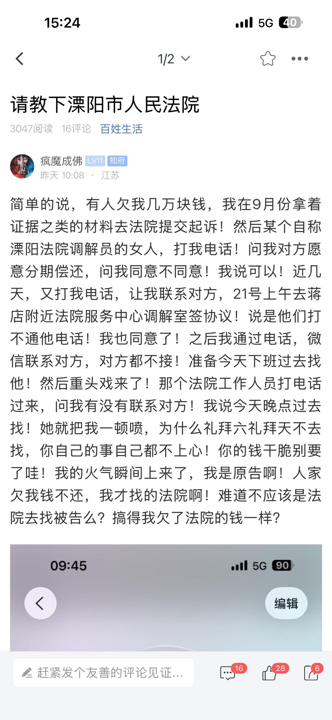 关于昨天我发的关于溧阳法院的帖子后续进展