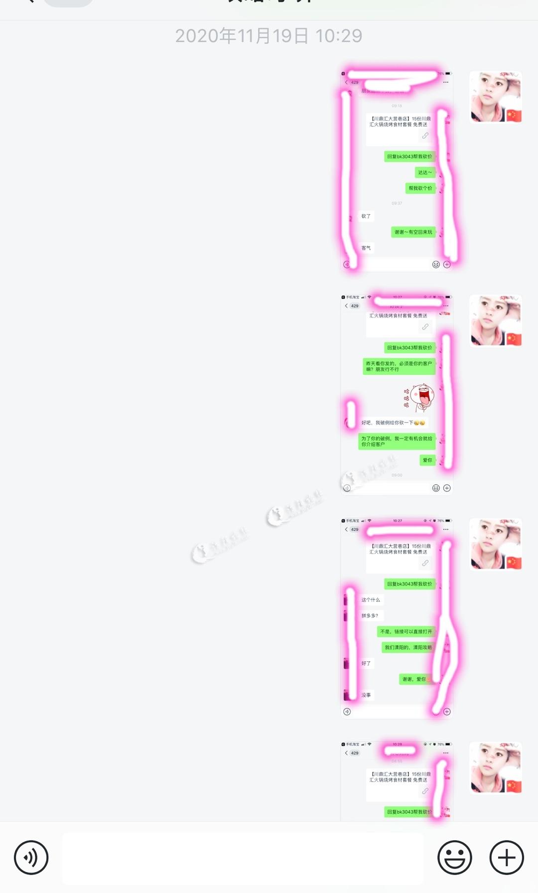 很配合的把每笔砍价的聊天记录截图发给你,你们怎么回复我的?