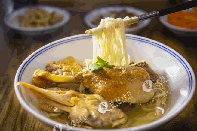 祝祥贵的特色鸭浇面也是一绝,鸭肉不肥不柴,又酥又香。用麻鸭慢熬出来的老鸭汤,汤色清醇,鲜味甚是浓郁。