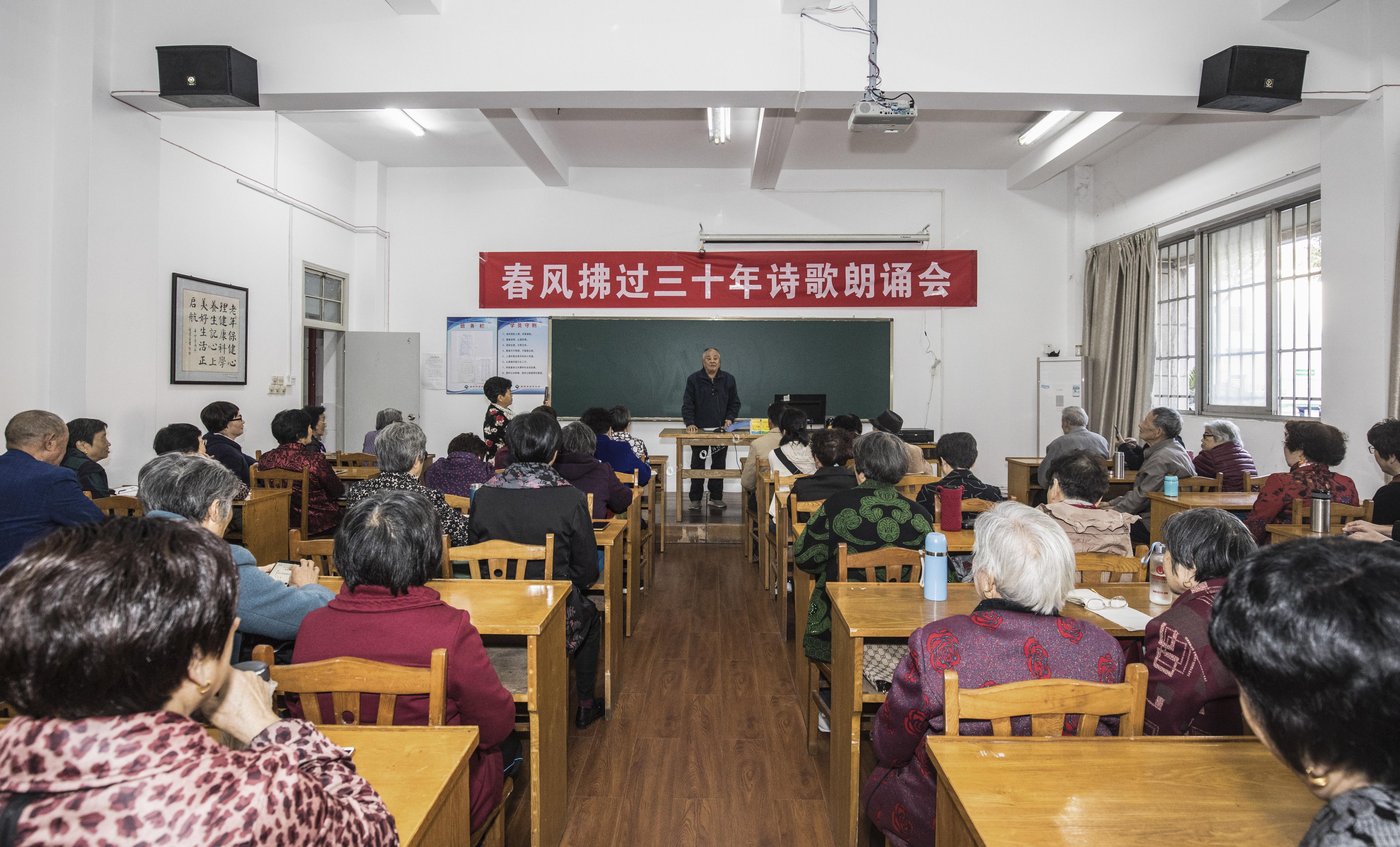 学员为本 培养“三有”老人在国家提出的“六老”方针中,“老有所教”、“ 老有所为”是基础和关键。因为只有“老有所教、老有所学”才能丰富“老有所养”的内容,扩张“老有所医”的知识,才能提高“老有所为”的能力。这正是老年大学的根本任务。教师的积极性调动起来以后,学校的文化活动丰富多彩,学员们融入其中,乐在其中。2020上半年的疫情防控,责任重大。在各个社区、村委,有为数众多的老年大学学员自愿报名,成为了志愿者,他们和社区工作者一道,在小区巡查,在小区出入口的帐篷里,在村头、街口的值班室,他们侧体温、看健康码、登记相关信息,其工作之认真,态度之温和,让人动容。很多学员还慷慨解囊,积极为灾区捐款,献上了自己的爱心;有学员深入各乡镇走访、慰问困境儿童。木兰拳、旗袍秀、舞蹈、戏曲、剪纸、书画、武术等班级的学员,都纷纷深入部队和乡村开展慰问和送快乐活动。学校木兰拳、柔力球、轻器械健身舞、八卦掌、交谊舞、旗袍秀等班级的学员,则在老师的带领下,组团参加市里的相关大赛,喜获佳绩。学校的旅游文化班,开展了“致敬志愿军老兵,弘扬抗美援朝精神”,向班上的抗美援朝老兵杨士林致献鲜花,赠送礼品;学校“春风拂过三十年·纪念溧阳撤县设市三十周年诗歌朗诵会”,在旅游文化班举行。现场100多人共同聆听、观赏。丰富多彩的校园活动,温馨和谐的学习氛围,吸引着众多的市民前来报名学习。如今的老年大学,呈现出一派红红火火,蒸蒸日上的喜人景象。2020年9月7日疫情后开学,学校开设8个学科、42个专业课程,80个教学班,有教师51名,学员4315人次。老年大学是幸福的乐园,“有作为、有进步、有快乐”的“三有”老人,将在这温馨的家园中收获健康,享受快乐。