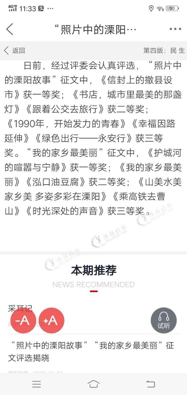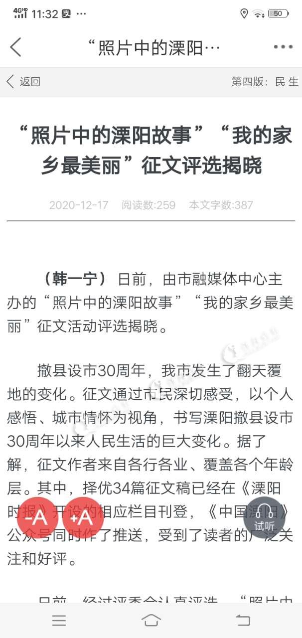 撤县设市30周年,我市发生了翻天覆地的变化。征文通过市民深切感受,以个人感悟、城市情怀为视角,书写溧阳撤县设市30周年以来人民生活的巨大变化。据了解,征文作者来自各行各业、覆盖各个年龄层。其中,择优34篇征文稿已经在《溧阳时报》开设的相应栏目刊登,《中国溧阳》公众号同时作了推送,受到了读者的广泛关注和好评。
