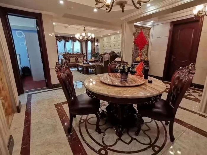 奥体国际花园,12楼,168平+入户花园12平方,全天无遮挡,客厅餐厅全大理石,大金地暖、空调(厨房也有)、新风系统,全屋两套净水系统(两次过滤),toto智能马桶,厨房方太洗碗机、蒸箱,燃气灶,其余全部三星电器,纯实木全屋定制,加纯实木欧式家具,四室三厅两卫,装修120万以上,一口价282.8万。