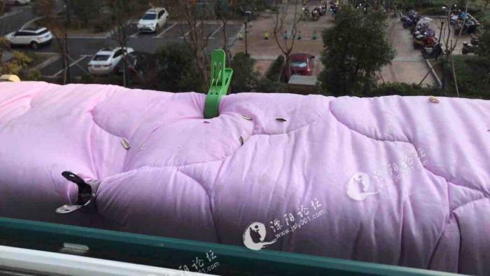 今年已经晒坏一床被子一床毯子,毯子是由高空抛物(应该是人家扔到烟头)烫了几个洞,一床被子如下图,都废了。跟物业反应,反应毯子的时候没有任何回复,反应被子的时候就在电梯里贴个告示,也是啥用没有。