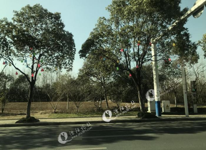 这两天回家路上看到溧阳奥体大道两边的行道树上挂满了葫芦彩灯,一个个五颜六色的小葫芦在风中吹动着煞是可爱。我估摸着为了营造喜庆、祥和的春节氛围,所以政府在周边实施了春节夜景亮化工程,为城市披上了喜庆的彩装,让市民提前感受一下浓浓的“年味”。等这些彩灯全都安装完毕之后,到了夜晚彩灯亮起来以后,一定非常好看,住在这一带的市民晚上散步看到这么美的夜景想必也十分开心。