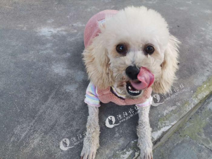 泰迪狗,母的。身上穿着条纹的衣服和藕粉色的马甲(图片上的就是)。在1月31号早上在马垫医院旁边城东大道的十字路口附近丢失。名字叫“三毛”,用溧阳话喊会有反应。大家有看到的话帮忙留意下,找到必有酬谢!