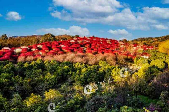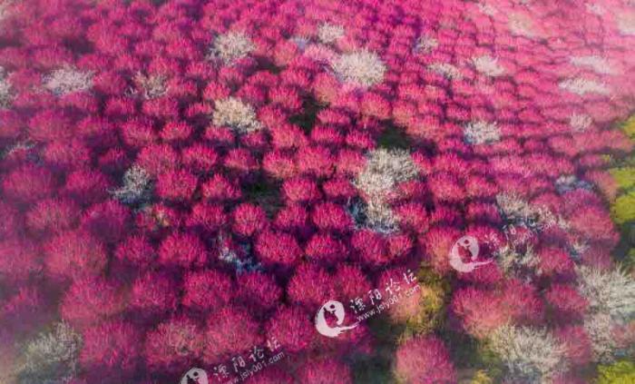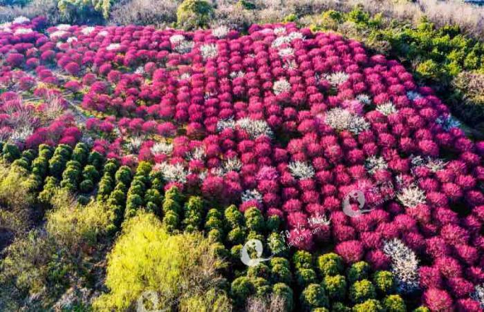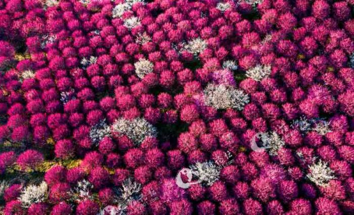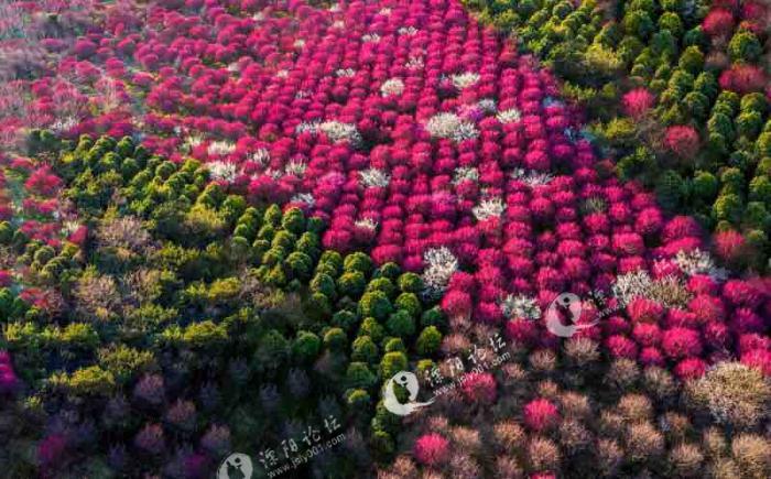 @林森拍摄并提供素材:溧阳城西花已开,梅花季,城市旁桃花源!航拍地点:焦尾琴公园西边(奥体体育馆西)