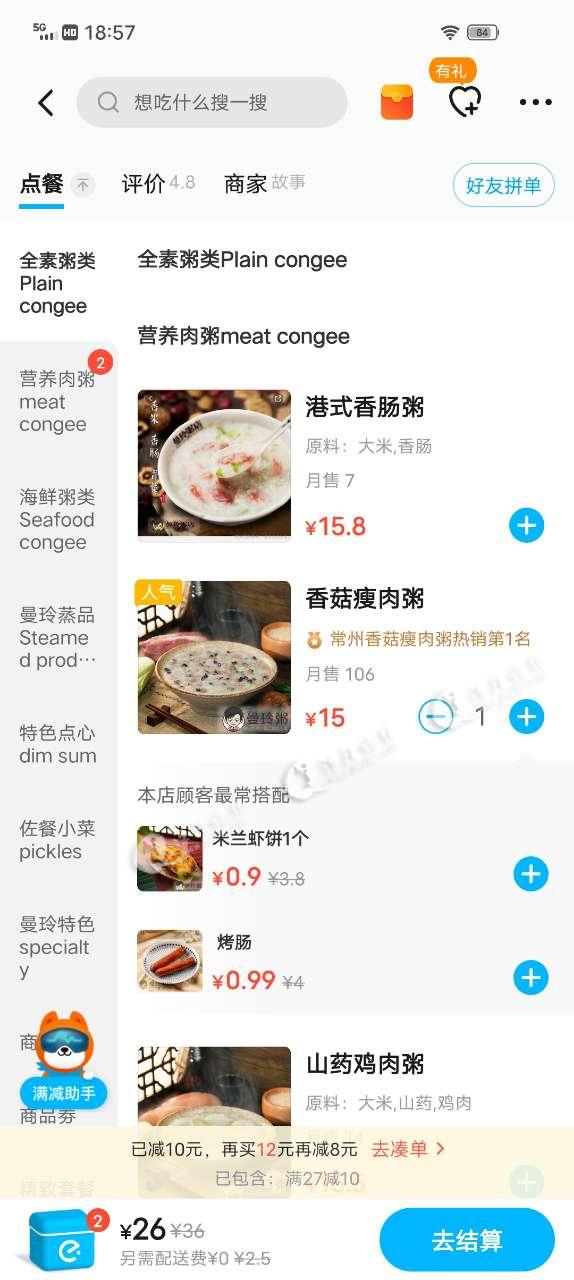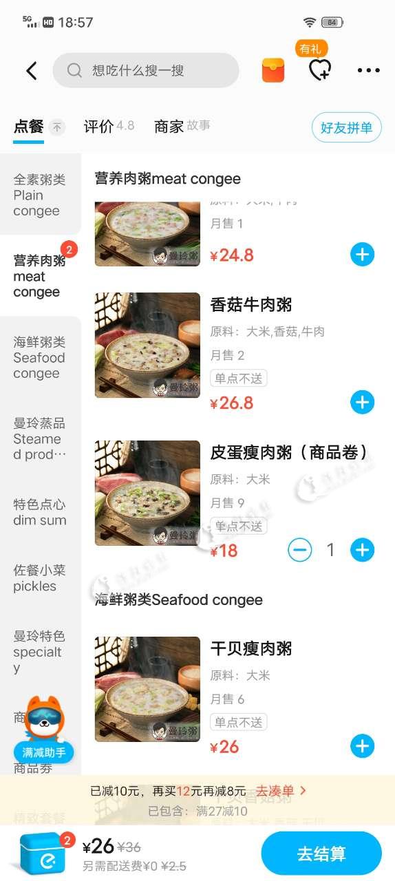 估计是优惠只能享受一个,你选择了包子就失去了那个27-10的优惠了。