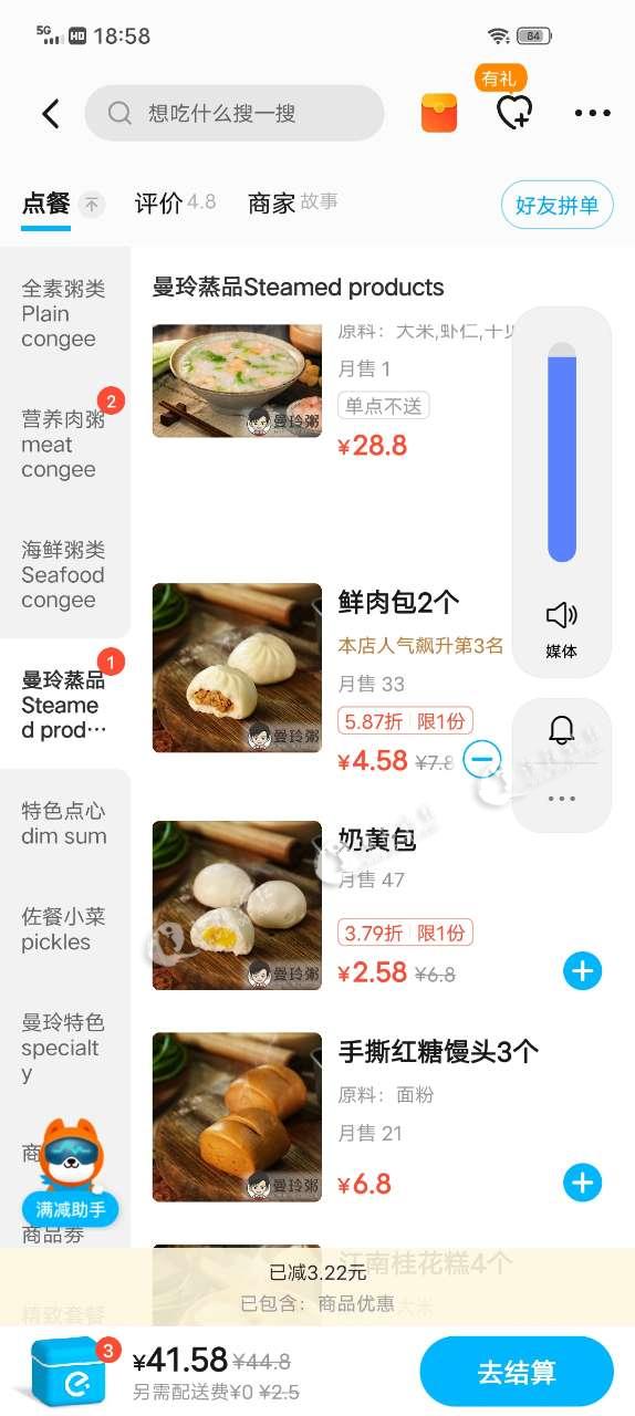 是我数学不好吗?20几块,再加一个5块几的包子一下子变成40多。