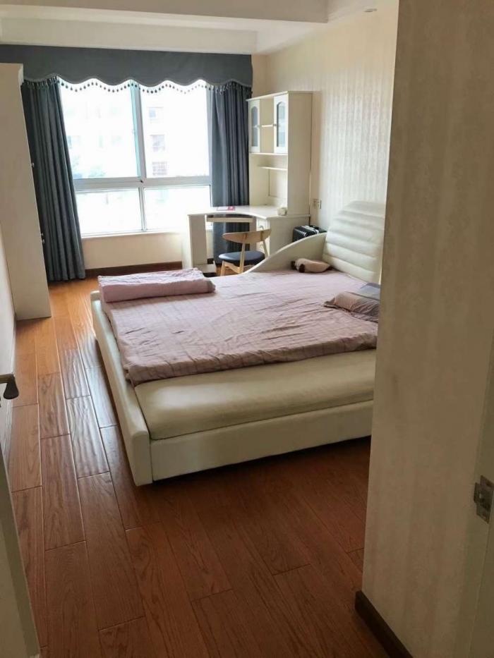 华府天第14楼  143平方  三室二厅一卫加一衣帽间  双阳台  豪华装修三年  基本未住 花了30多万,中央空调品牌家电,家具全送,拎包入住  开价228万。