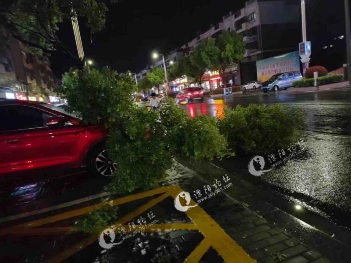 溧阳这几天暴雨天气接连不断,前几天溧阳市区突然下冰雹,听说昨天竹箦也下起了冰雹,可真是怪异的天气。今天大晚上又是电闪雷鸣,溧阳上兴街上植物医生那条路,一棵树被雷劈开了,树枝掉落在一辆车附近,也不知道车有没有刮蹭,大家最近出行多注意安全,及时关注天气预报和预警信息,做好防范。