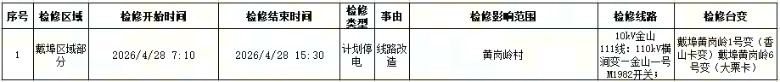 1、检修期间,存在提前送电的可能,遇天气原因或特殊情况可能顺延或取消。