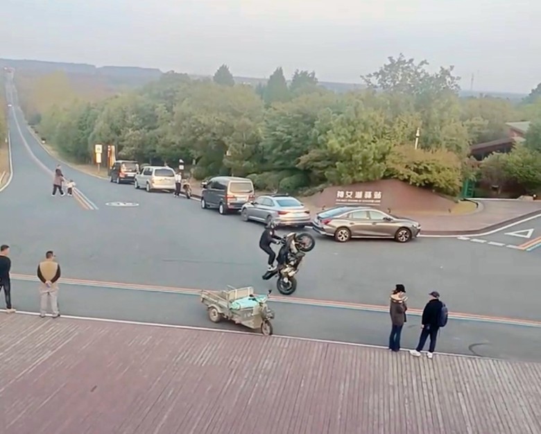溧阳一号公路上看到一位玩摩托的大哥,这技术真是不得了