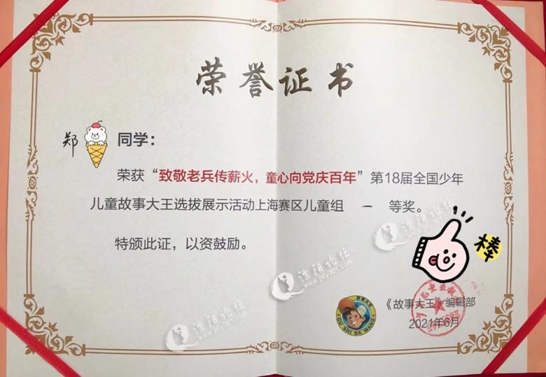 经过几轮角逐,终于拿下“第18届全国少年儿童故事大王选拔赛上海赛区一等奖”
