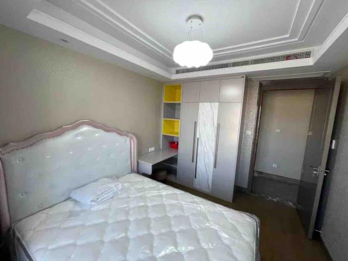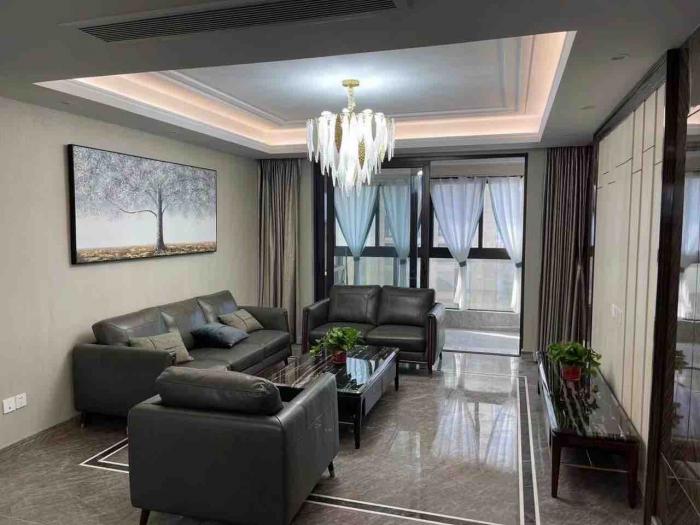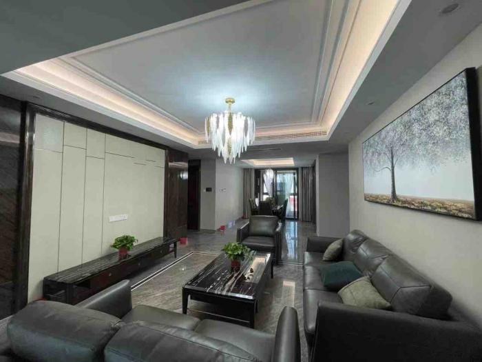 华府晶园二期9楼东边户,约166平方,三室两厅二卫书房,中央空调地暖豪华装修,品牌家具家电,全屋定制家具,房东一天未住,售价:378.8万,有一车位原价另购,17766224580