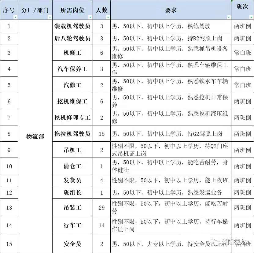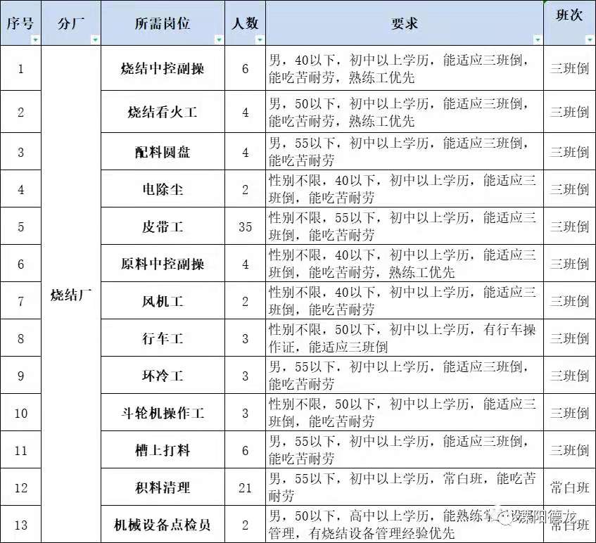 | 招聘职位: | 普工,机修工,行车工等 |
