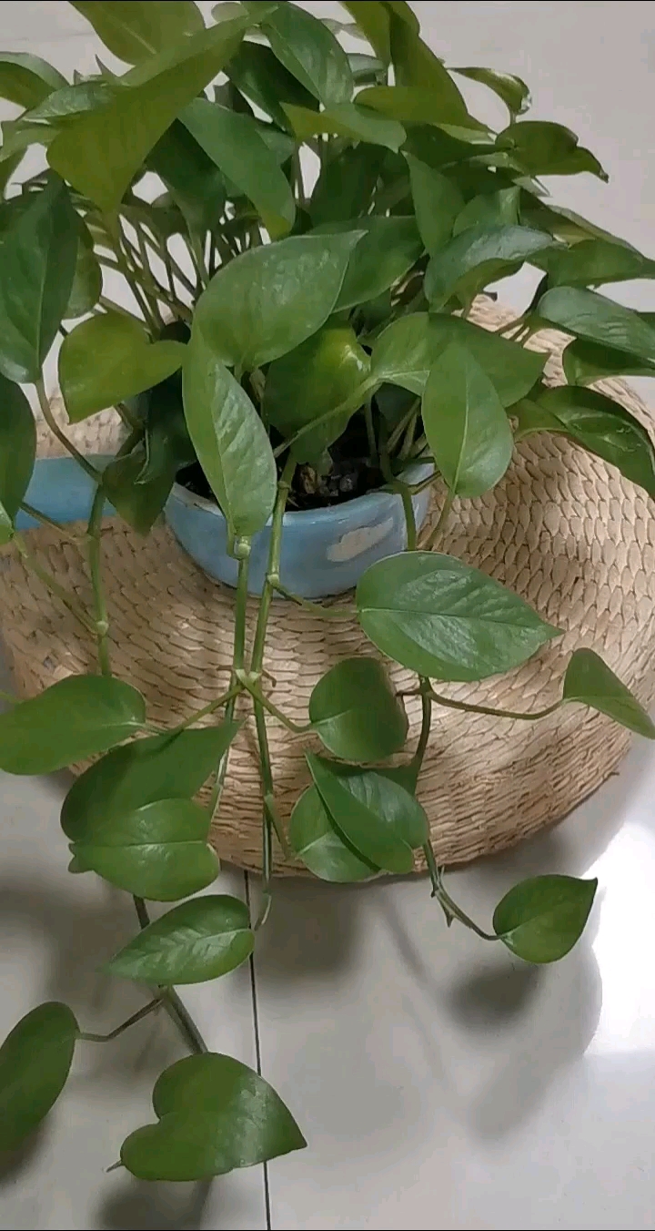 • 养了三个月的绿萝,从一棵棵幼苗,经过细心的培育,己是满盆青翠,并目还有枝繁叶茂枝条延生長!绿萝生性喜阴,生命力顽强,适当给予它散光就可!当室内看到绿意盎然的绿萝给人欢愉悦感!而且绿萝是净化室内空气的最佳绿植!
