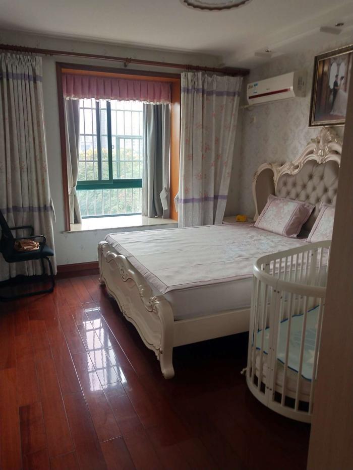 外国语学校学区房,盛世华城5十顶,4室3厅2卫,现代豪装,内梯,5楼110平,顶60平左右,有阳光房,带15平大储,开价145.8万,看中可谈