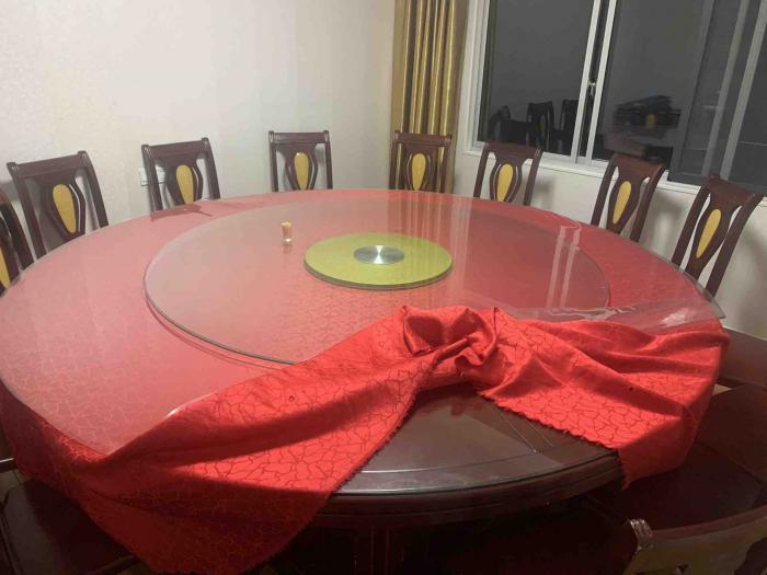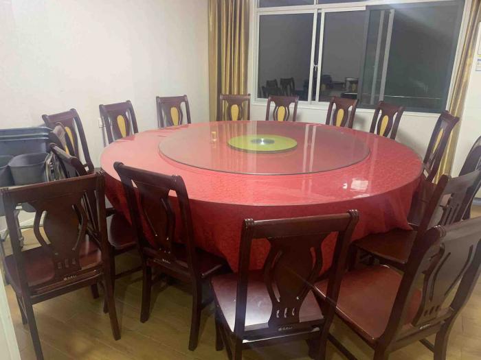 超低价!2.4米大圆桌,配套16个靠椅,有玻璃,1200元,用了一年不到,还有一个2米的  1000元,天目湖看货,非诚勿扰,谢谢!联系方式17715967778