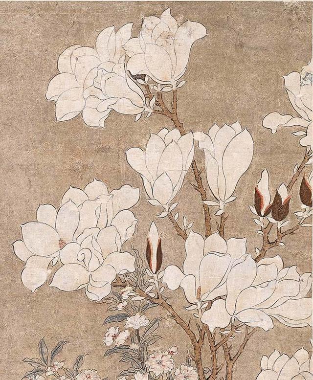画家自题:“玉兰挺芳枝。幽兰出深谷。生长虽不同。气味各芬馥。沈周。” 明 沈周 写生册《玉兰》 古代宅院常种玉兰,象征“玉洁冰清”或“玉堂富贵”。早春玉兰往往叶未长而花先发,有“木花树”或“望春花”之称。明 沈周 写生册《玉兰》 台北故宫博物院藏