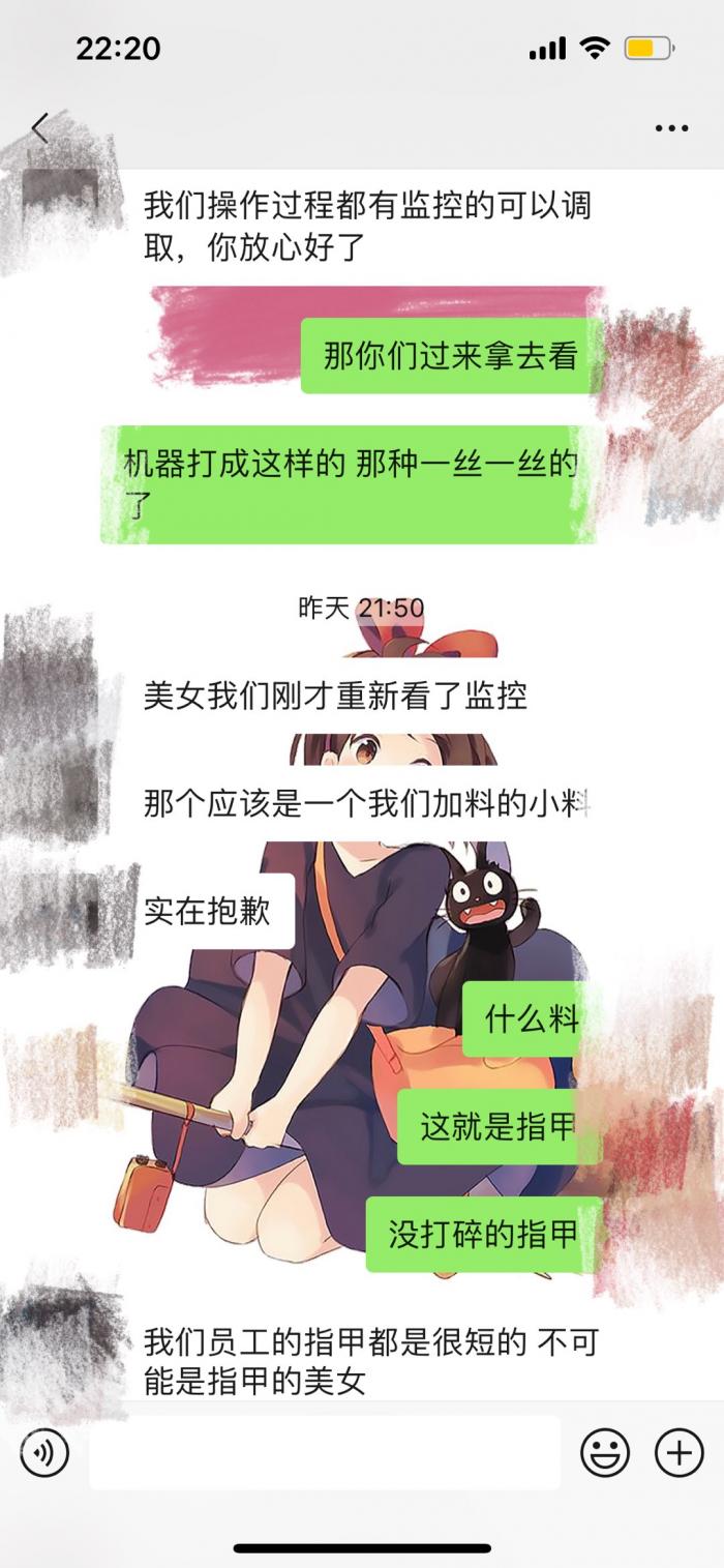 有哪位员工指甲会这么长??而且人家都是戴手套的