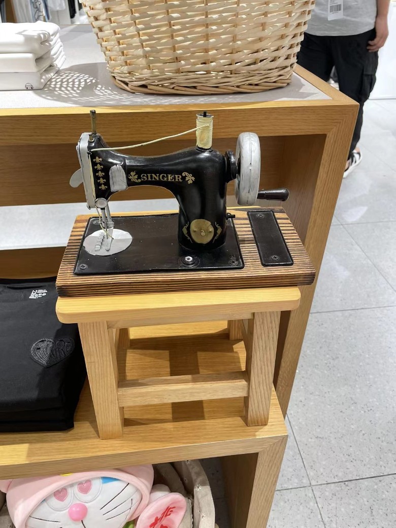 前几天吃过晚饭去溧阳上河城逛悠,路过一衣服店,看到店内柜台上摆着一个迷你小缝纫机,小小的怪可爱的,瞬间吸引了我,赶紧上前瞧瞧。还别说各种细节都做的挺到位的,何曾想衣服店还会摆个这个,一般都饰品店会看到这种小玩意。不过还蛮应景的,衣服店,裁缝么,哈哈哈。