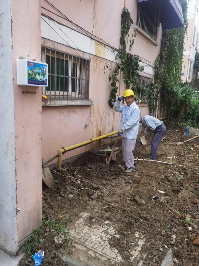 荷花新村小区现在正在老小区改造,但是这些黄色的天燃气管道竟然明晃晃的曝露在外面(已回复)