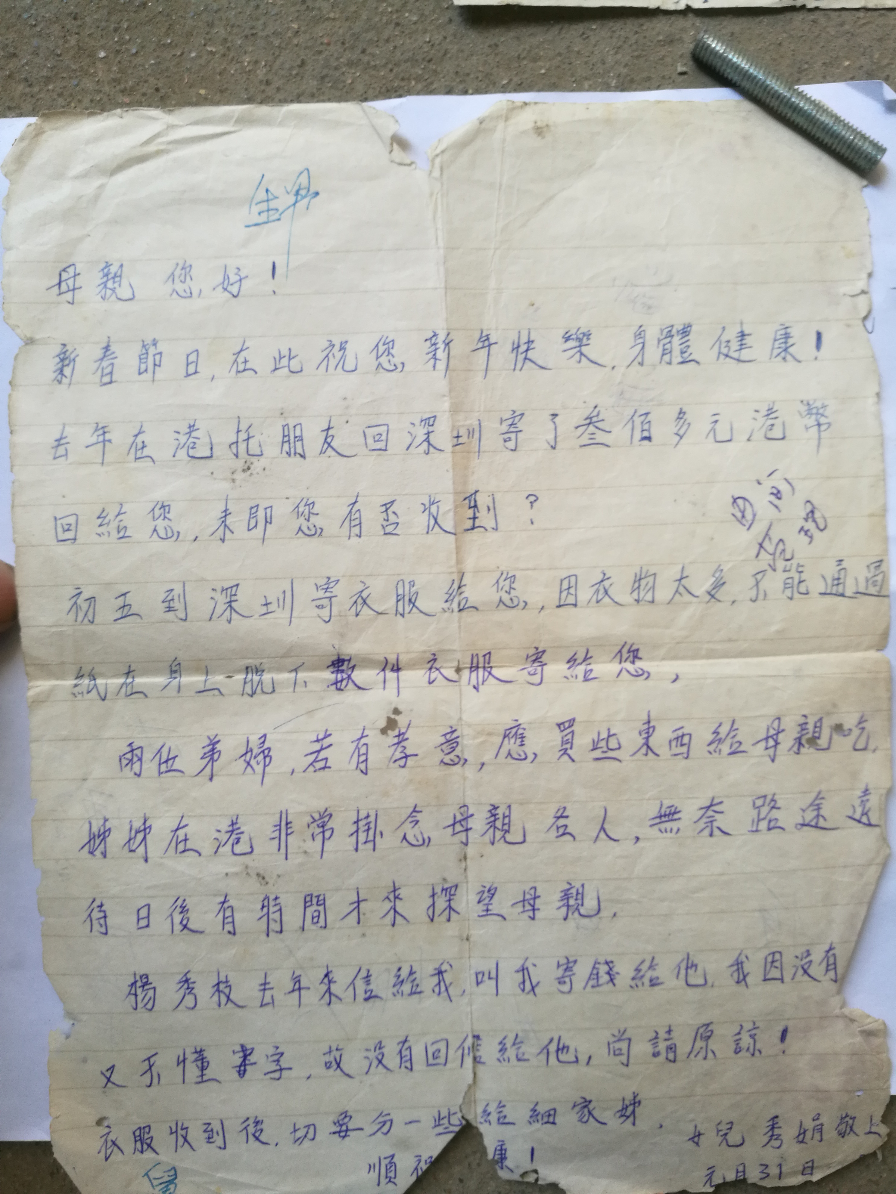 “后来,我姐不养猪了,就找了两份工作,”洪芝叔抽出本文开头的1978年的那封信,对我们说,“所以,她一天要做十六个钟。每天做完一份工作后,她就步行赶往下一个工作地点。一边走,一边啃着随声携带好的馒头或饼干等干粮。”